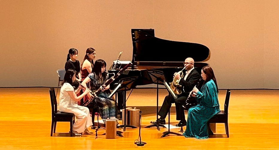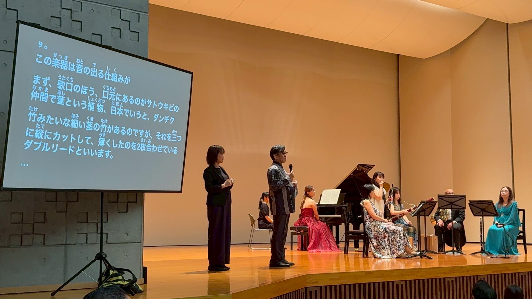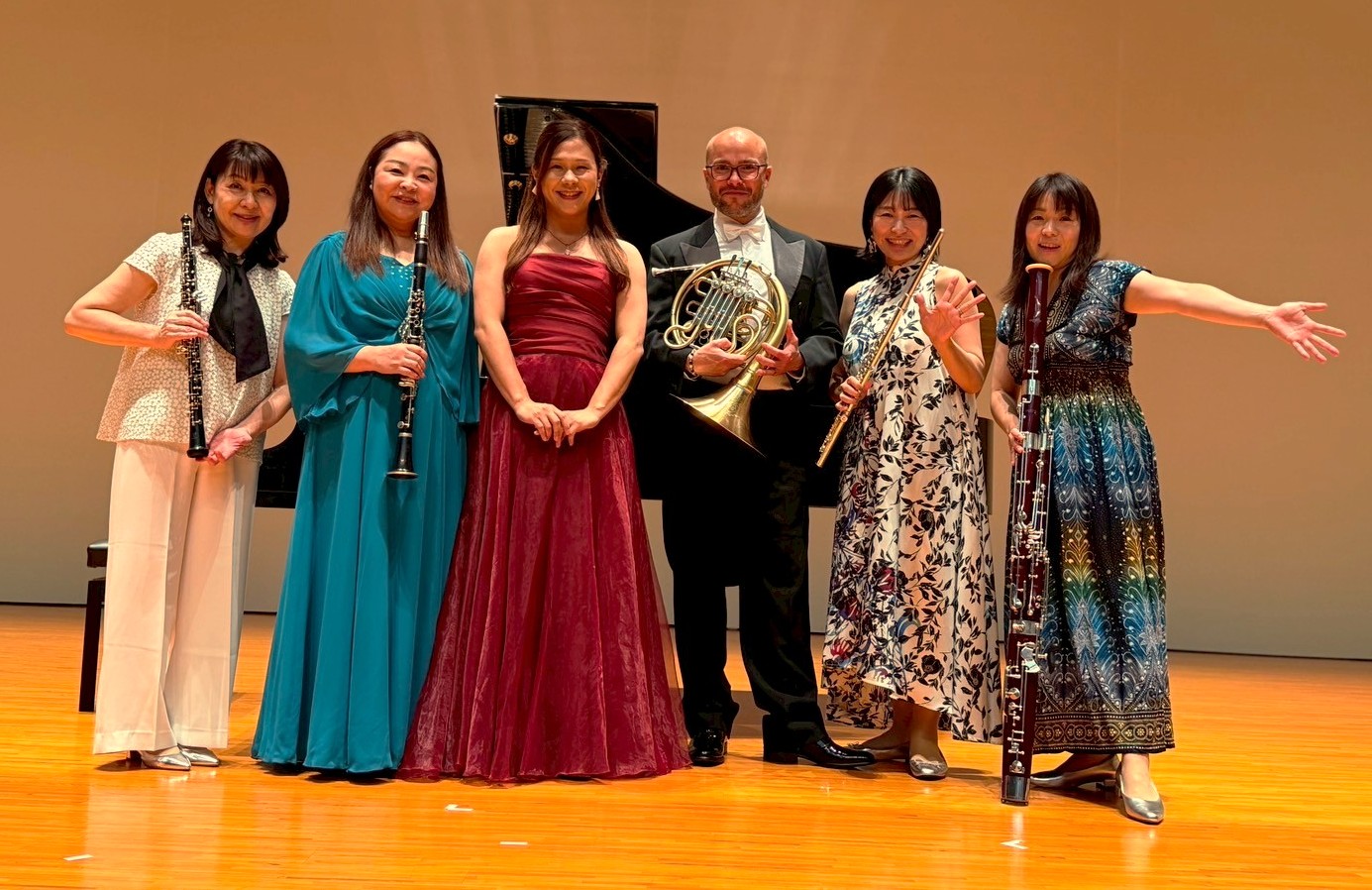 今回もトークを交えながら、木管楽器とピアノによる名曲を中心に演奏しました。「ピアノと木管五重奏のための6つの日本民謡」では、各楽器の解説を交えつつ、「さくら」「ひらいた ひらいた」「ずいずいずっころばし」「五木の子守唄」「ねんねんころりよ」「通りゃんせ」を披露しました。