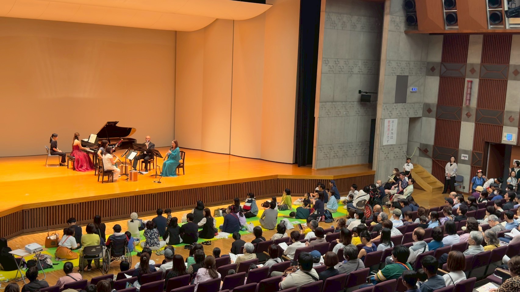 コンサート終盤に演奏されたプーランクの《木管五重奏とピアノのための六重奏曲》では、音楽に合わせて自然に踊り出す子どもや、その様子を温かく見守りながら鑑賞する観客の姿が見られ、会場全体が和やかな雰囲気に包まれました。演奏者もその空気を心地よく感じながら演奏しており、まさに誰もが共に音楽を楽しむ空間となりました。